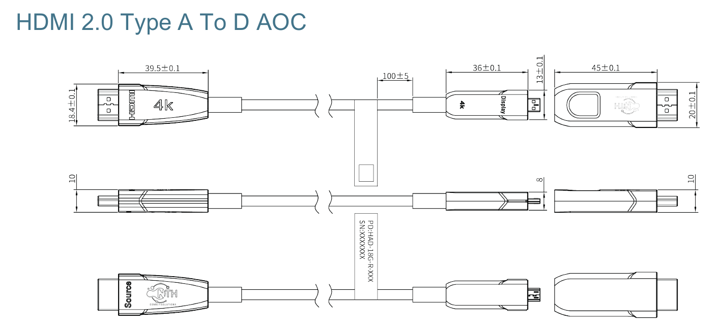 NTH 4K HDMI Type A-Type D AOC is a superior performance solution for easily extending 4K high resolution HDMI digital signals to incredible distance.